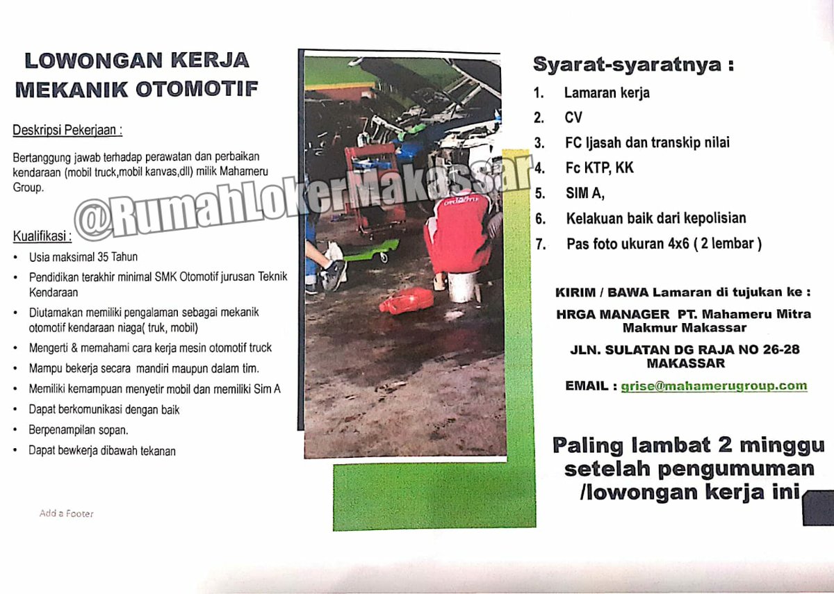 Rumah Loker Makassar On Twitter Dibutuhkan Segera Bagian Mekanik